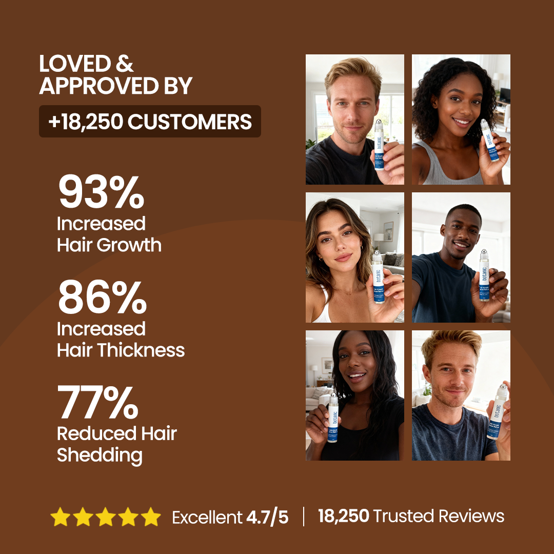 The Botanic Advanced Hair Growth Roll-On Serum is more than a topical—it's a patented micro-delivery system that drives actives where hair actually grows: the follicle. No mess, no grease—just targeted absorption and visible density gains.